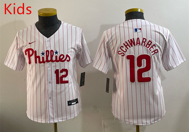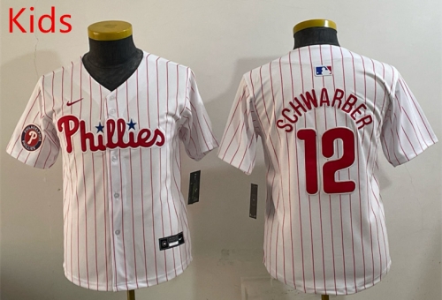 Product Name:(Logo 2) Philadelphia Phillies White&Red #12 Kids MLB Jersey-0840